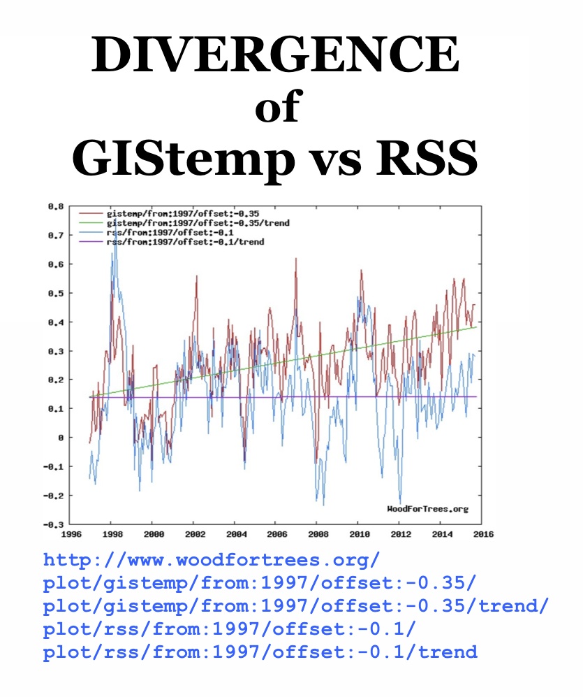 - The RSS satellite dataset shows no global warming at all for 225 months from February 1997 to Octber 2015 – more than half the 442-month satellite record.