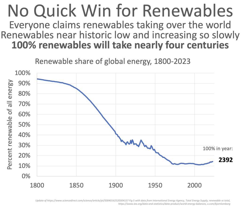 Bjorn Lomborg: ‘Renewables near historic low & increasing so slowly’ that ‘100% renewables will take nearly four centuries’