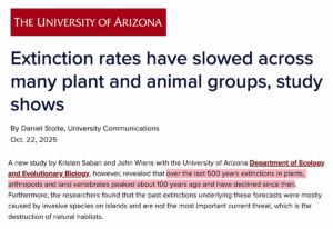 Turns Out Climate Change Isn’t Causing ‘Mass Extinctions’ – Study finds extinction rates have slowed to currently at their ‘lowest in the past 500 years’ Admin December 5, 2025