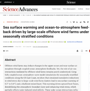 Cancel Net Zero: Study Finds Wind Turbines Cause Ocean Heating – Localized surface sea temps rise by 0.3°C-0.4°C & Destabilizes marine food supplies – Published in journal Science