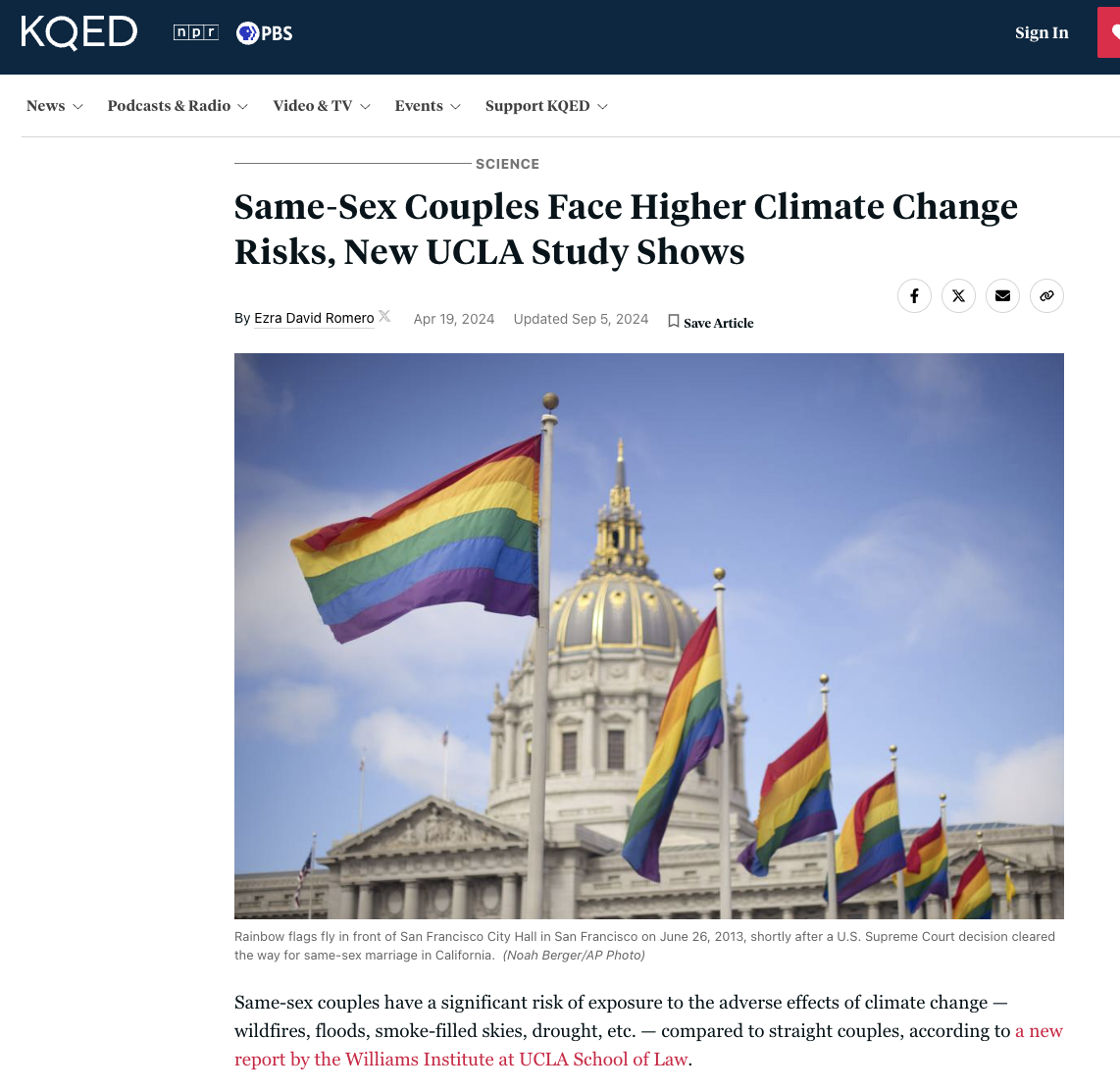‘Same-Sex Couples Face Higher Climate Change Risks, 2024 UCLA Study Shows’ – ‘Our findings probably understate the true impact’ April 14, 2026