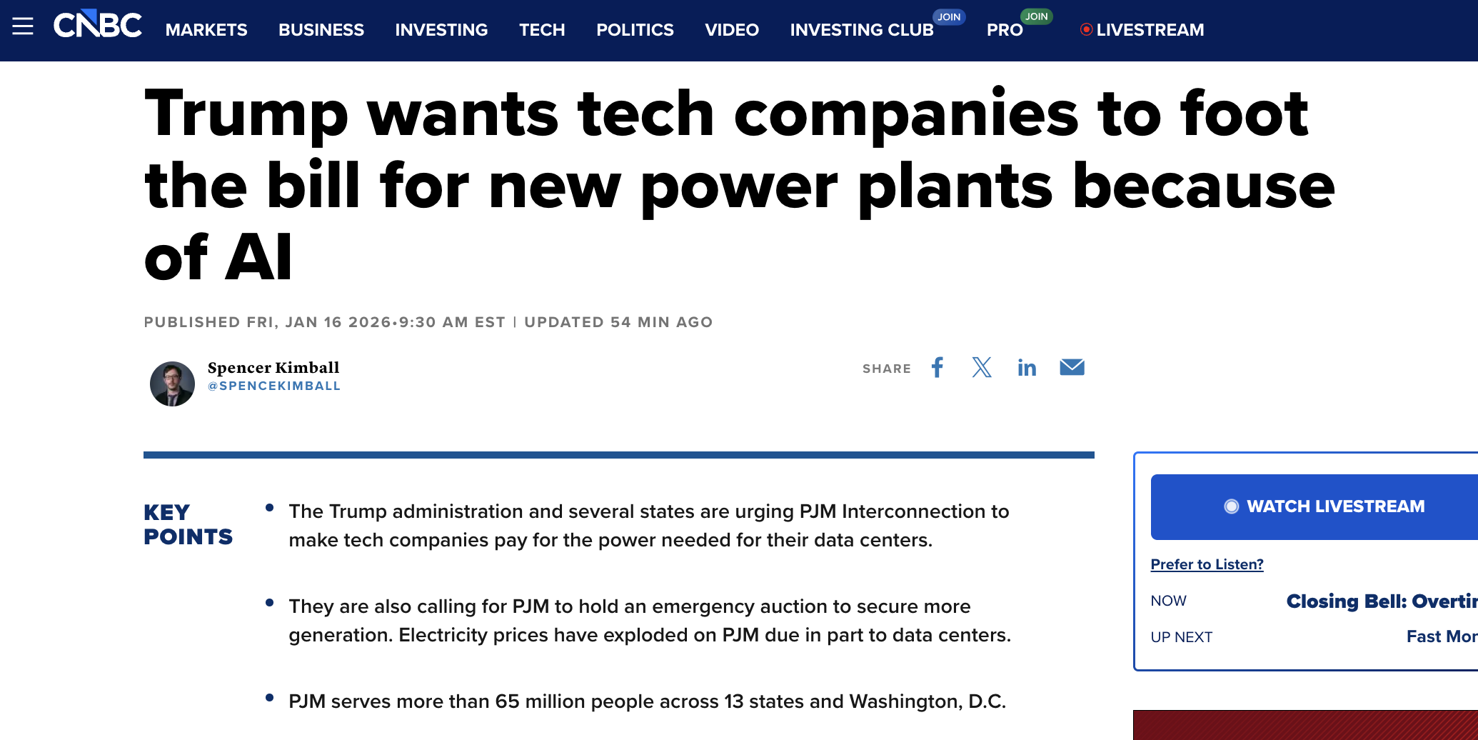 Trump wants tech companies to foot the bill for new power plants because of AI