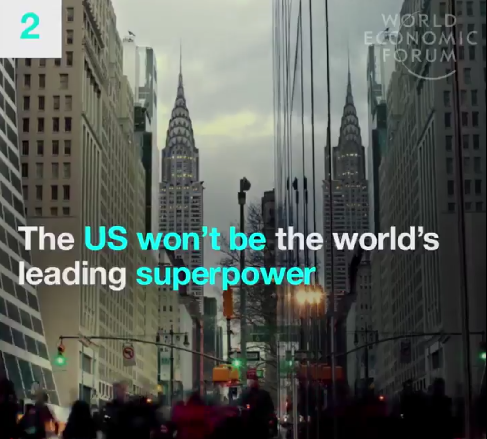 3. US dominance is over. We have a handful of global powers. Nation states will have staged a comeback, writes Robert Muggah, Research Director at the Igarapé Institute. Instead of a single force, a handful of countries – the U.S., Russia, China, Germany, India and Japan chief among them – show semi-imperial tendencies. However, at the same time, the role of the state is threatened by trends including the rise of cities and the spread of online identities,