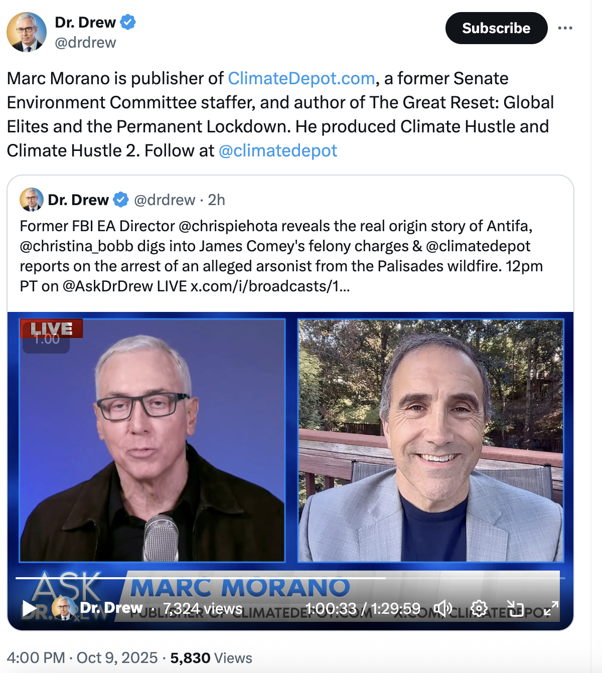 Marc Morano is publisher of ClimateDepot.com, a former Senate Environment Committee staffer, and author of The Great Reset: Global Elites and the Permanent Lockdown. He produced Climate Hustle and Climate Hustle 2. Follow at https://x.com/climatedepot