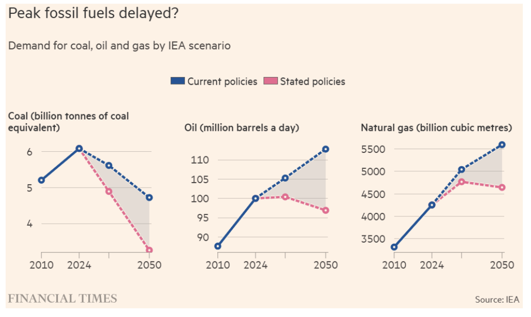 IEA predicted that global demand for fossil fuels such as oil and natural gas will keep growing till the middle of this century – at least. The reason for the changed forecast is a sharp difference between what countries SAID they would do and what they are actually doing: