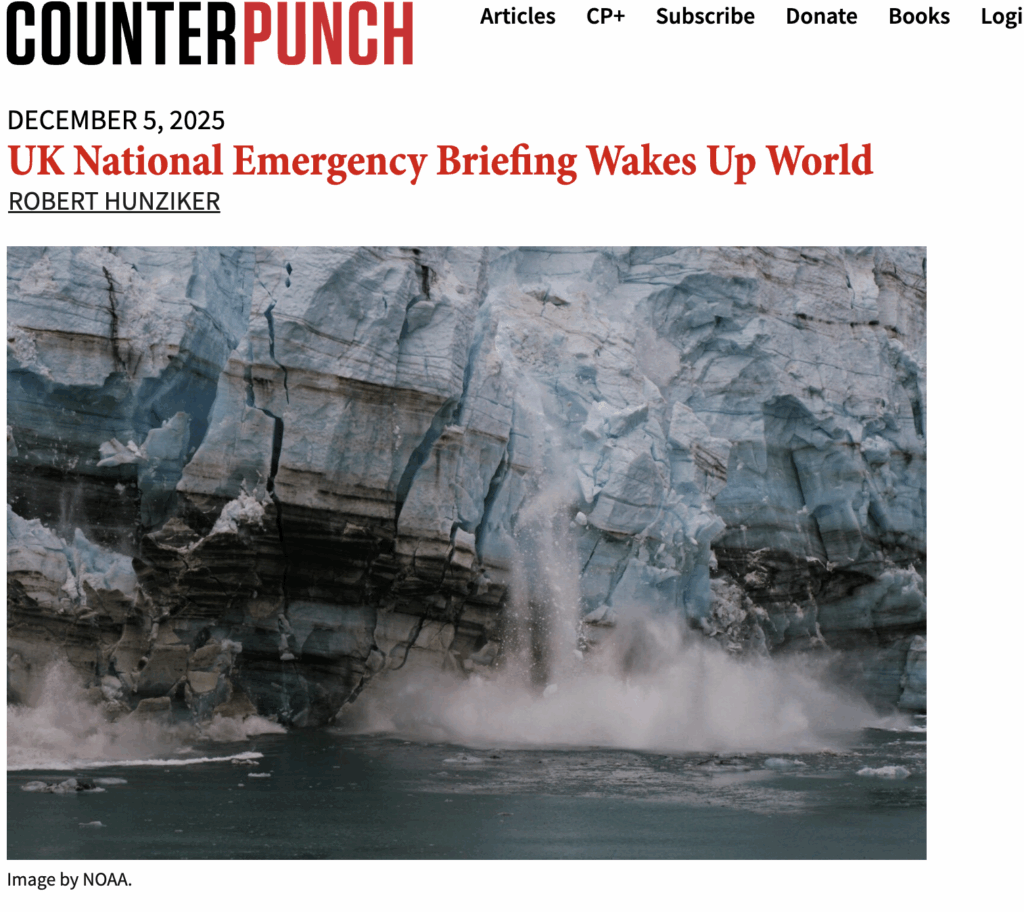 Opening remarks by Professor Mike Berners Lee, Lancaster University, Sustainability Expert, Chair of the session: “For an understanding of the root causes of the most serious crisis that will ever impact our species we need people. We need to trust them because they are telling us the truth…. The information that we’re going to be looking at is extremely serious, urgent, and it affects us all here in the UK. That is why we’re calling this a National Emergency Briefing…. In the words of James Baldwin: ‘Nothing can be changed until it is faced.’ COP30 recently ended without any progress on fossil fuel emissions, in fact, the words ‘fossil fuel’ were stripped from the proceedings. We desperately need to reset the narrative on climate change and wipe out misinformation.”
