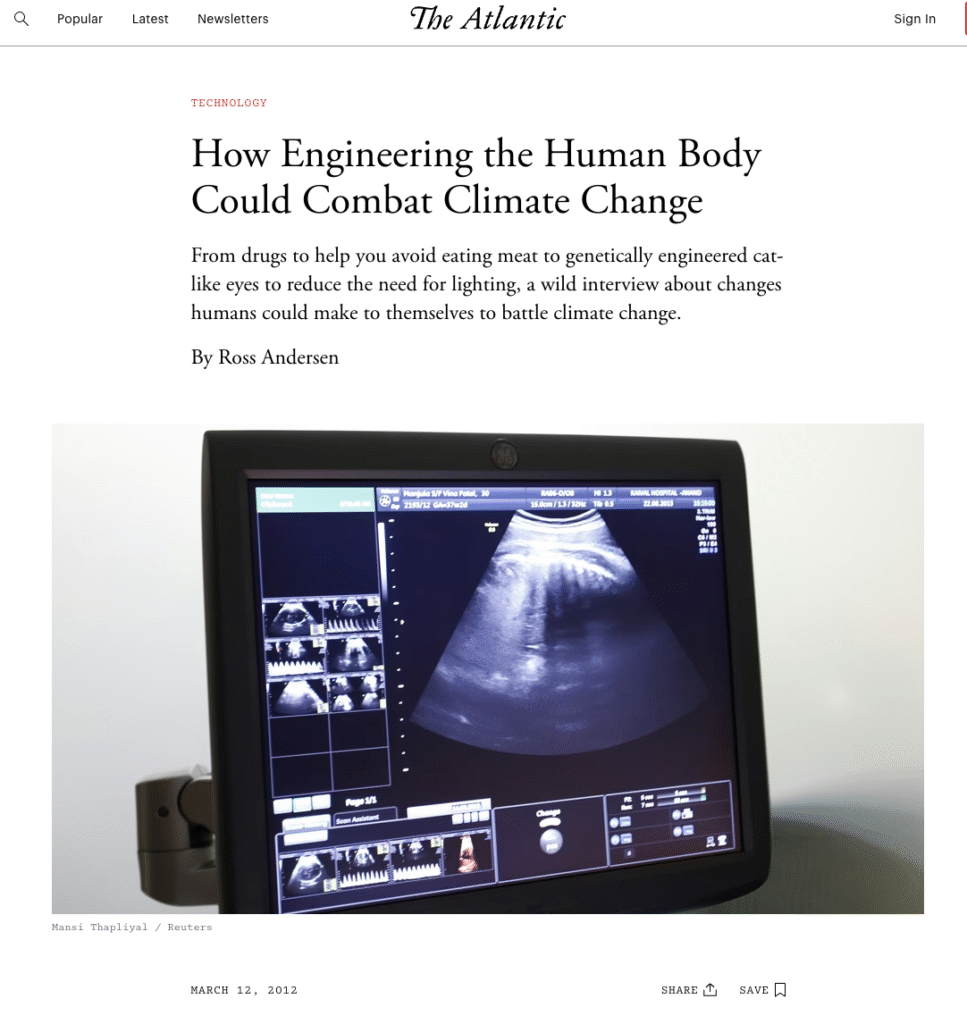 Flashback 2012: Engineering the Human Body Could Combat Climate Change – The Atlantic