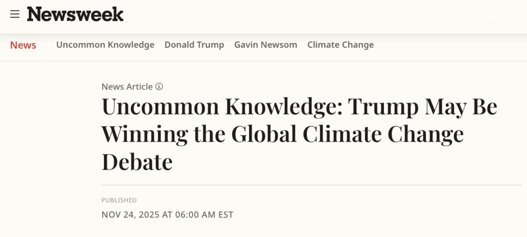 Newsweek Mag: ‘Trump May Be Winning the Global Climate Debate’ – ‘Trump looked like he was winning the argument without even showing up’ at COP30