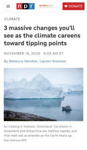 NPR warns! ‘3 massive changes you’ll see as the climate careens towards tipping points’ – 1: Coral reefs could be gone forever – 2: Ice sheets in Greenland & W Antarctica could collapse – 3: Permanently frozen ground is thawing
