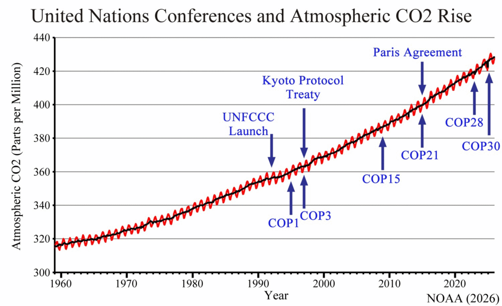 https://www.cfact.org/2026/01/12/victory-as-trump-withdraws-america-from-un-climate-framework-ipcc/ By Craig Rucker We’re out! Our long national nightmare of UN bureaucracies exploiting global warming as pretext for forever-increasing taxation, spending, redistribution, and control over Americans is winding down at last. On January 7, President Trump issued a presidential order withdrawing the U.S. from the UN Framework Convention on Climate Change (UNFCCC) and the Intergovernmental Panel on […]